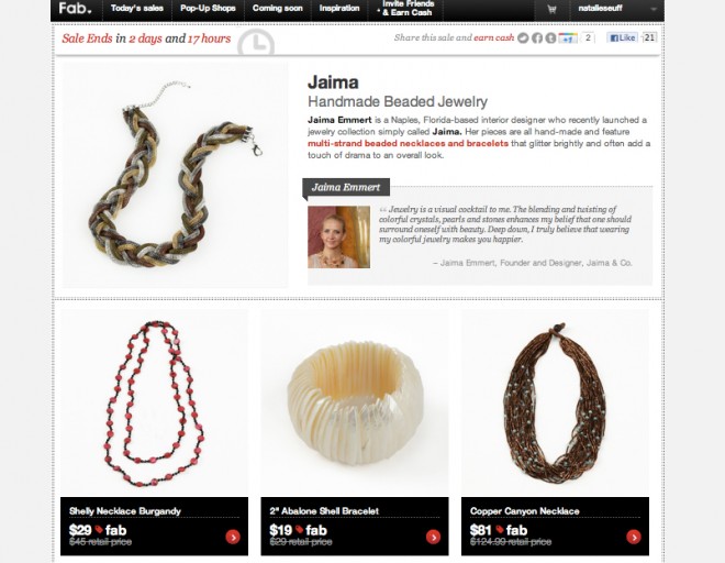 1. 设计精美 “在风格、色彩或其他相关方面得有一些让人觉得有意思的东西。样式很特别吗?有什么不一样的功能吗?” 2. 做有故事的产品 “只要这个产品有背后的故事,不管它是个茶杯还是块桌布,我们都能把它卖出去。” 3. 抄袭可耻 “Fab上的每种商品都有人仿冒,我们也不会将这些仿冒品放上网站。人们选择Fab正是因为他们能在这里买到自己喜欢的东西,而不是廉价品。我们要做的就是为消费者带来更多从没见过的新奇玩意儿。” 4. 过时的产品就别拿出来了 “Fab确实是一个销售渠道没错,但它不是旧货处理市场。” Fab的价值 与其他闪购网站不同,Fab能够同时为消费者和供应商带来价值。正如Shellhammer所说:“我们不像Groupon,设计师们自己贴钱吸引更多消费者;每一个与Fab合作的设计师都能赚钱。” 除了销售分红,设计师们还能获得消费者数据(很少有零售商能做到这一点),从而更有针对性地设计产品。Shellhammer表示: “在大多数人眼中,时尚和设计永远只是少数一部分人参与的事情。Fab在做的就是为那些有意思的设计带来更多观众。” 用事实说话