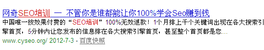 不知从何时起,SEO这三个字母开始慢慢的进入了中国互联网人的视野;不知从何时起,SEO优化这个词慢慢的被人所熟知;不知从何时起,各大网站、论坛到处都是SEO的文章,更不知从何时起,SEO培训市场开始变得如火如荼,一派欣欣向荣.。 随着百度竞价成本的提高,越来越多的中小企业开始注重SEO,这也就催生了一大批SEO从业者。但是目前的大中专院校还没有开设SEO这个专业,无奈大部分SEOer的SEO知识只能通过SEO培训机构来获得。于是一些接触SEO早一些的人办起了SEO培训,开始他们的|“教书育人”之路。笔者暂且不论他的“书”教的好不好,是不是误人子弟?先来看看中国SEO培训市场的状况吧。 一,SEO培训市场犹如“诸侯争霸” 曾几何时,SEO培训机构如雨后春笋般开始出现,随之SEO培训市场也是硝烟弥漫、战火不断。每家培训机构都丝毫不示弱,拿出自己的看家本领,开始“攻城略地”,抢夺自己的一座城池。你的培训费299,做的是低端市场,他的培训费899,做中端市场;那我就来个2080吧,占领高端市场,打造SEO行业的奢侈品。这叫没有最贵,只有更贵。这是战术问题你懂不懂?不管是做低端、中端还是高端市场彼此之间避免不了战争,于是各方都派出自己的间谍,打探敌情,并且时不时的还冒充内部学员给你来个毁谤,让你军心不稳。反正各路诸侯都是派出自己的精兵强将,使出浑身解数,打着各种旗号“招兵买马”。 二,SEO培训市场实乃“王婆卖瓜” 现在基本YY上每家SEO培训机构都说自己是YY第一家SEO培训结构,并且为了争做这个市场的老大,打造在这个行业中的知名度,也都开始打出自己的口号。下面来看看这些响亮的口号: 口号之一: