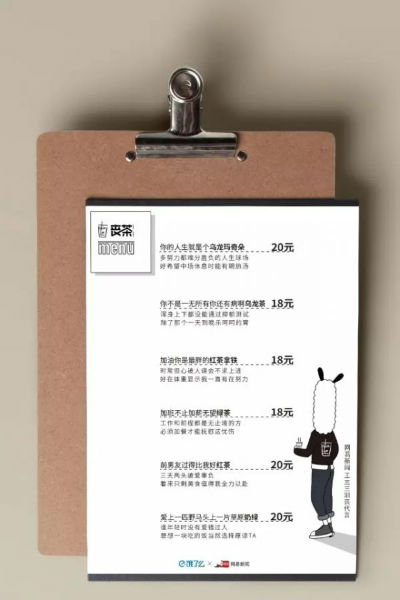 五一在家“挺尸”的你(或者加班加了三天的你……),有没有听到一股来自上海的“丧茶”风,小确幸的“喜茶”之后,这里是治愈你的小确丧,来一份“你的人生就是个乌龙玛奇朵”,点一杯“加油你是最胖的红茶拿铁”……