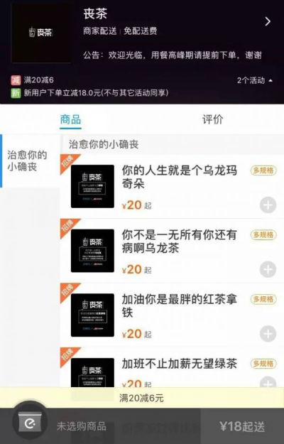丧文化背后,到底为营销界带来了什么? 从心理学上讲,丧文化代表着大部分年轻人的压力宣泄,是蹉跎岁月、还是再怎么努力都不如别人的轻轻一次尝试,是为了成功在社会上磕碰着流血、还是找一个最舒服的姿势慢慢苍老了人生。 拥有着大量年轻忠诚用户的丧文化,可以为营销带来曝光率、提高品牌认知度…… 如果我们迎合年轻人的丧文化,就能获得年轻人的好感、达到走进用户的目的,比如今年劳动节饿了么联合网易新闻推出的这款“丧茶”,就让饿了么与网易新闻在五一节假日登上流量浪尖。