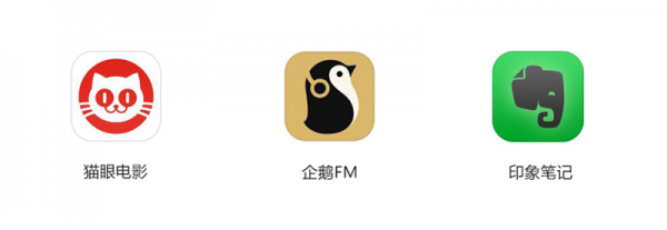 像摩拜单车,光看LOGO你就知道跟骑行有关;百度地图,一看就知道跟地理位置有关;微信,采用两个气泡,很明显的社交属性。 相对来说比较有趣的有Foodie,它是一款美食拍照的APP,总的来看是一个相机的镜头,又像一个盘子,上面摆放着勺子和叉子,简单有趣,一语双关。 蜗牛阅读,LOGO采用蜗牛和书的元素结合起来,凸显功能的同时,还传达了自己的产品特色。 d.产品名称的形象 比如:猫眼电影,logo是一只瞪着眼睛猫;企鹅FM,是一只带着耳机的企鹅;印象笔记,是一头大象。