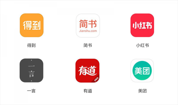 因此,以首字母为出发点,融入产品想要传达的理念进行加工,才是这个设计方式的精髓,而不是不过脑子的甩上去一个字母就ok了。 b.产品全称 LOGO也可以是产品名字的全称。这样做的优点是:简单粗暴,加深用户对产品名称的记忆,不需要对抽象符号二次加工。 比如:得到,简书,小红书,一言,有道,美团,等等。