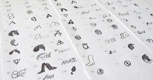 从这些关键词中 ,去除重叠的,提取出3-4个最能体现产品定位的,同各角色达成一致后,接下来的设计就围绕着它们进行。 2. 脑爆LOGO形式 大家常看到的LOGO形式有很多,但通过整体梳理后发现,总的来说就这么几个套路: a. 产品名字的首字母/一个字 b. 产品全称 c. 体现产品核心功能的图形/符号 d. 产品名称的形象 (对了,这个阶段最好使用纸和笔,不然很容易被线条粗细呀,颜色呀等分散注意力)