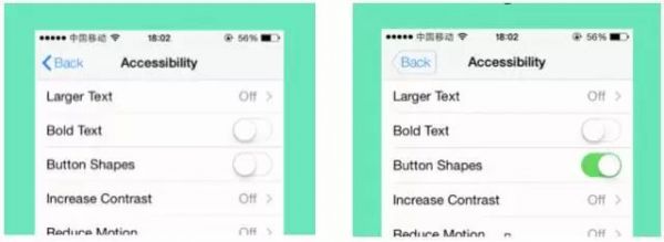 (图3) 第四种:按钮,图标,链接的按下状态 这类反馈是基于人在现实世界的经验。在现实中按一个按钮,它会立即有按下状态,例如陷进平面中或变色发光。在无触感的2d的屏幕上,更应该有状态的改变,让用户看到他的操作已经被界面接收到了。iOS安卓系统平台上的开关控件就是一个例子。它模拟了现实中的开关,在拨动的过程中非常直观地给用户反馈并告诉用户当前所处的状态。iOS系统中的手电筒,打开的时候是高亮状态,告知用户它已经被打开了。