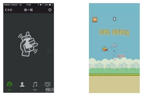 (图4) 第五种:声音和振动 声音能在一定程度上给用户提供有用的反馈。比如虚拟键盘在按下时的咔哒声,短信成功发送后的嗖声,微信摇一摇手机之后的咔嚓声。不过声音反馈属于点睛之比,而且受环境影响,如果过多地使用会变成一种打扰。震动是一种比较强烈的触觉反馈,可以用来代替或加强声音提示。在手机系统中应用的非常广泛:如来电,短信等。在第三方应用上很少用到,除非是游戏里面挂掉时会震你一下,可见震动还是过于猛烈了。