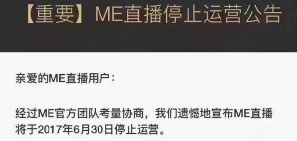 ME直播无疑是有“背景”的直播平台中,最短命的一个。