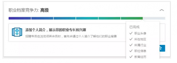 同样,在LinkedIn完善履历,用户注册之后,会先引导用户完成基本信息的完善,并且在后续过程中,通过feed流中穿插信息填写入口,引导用户快速完善个人信息的细节。