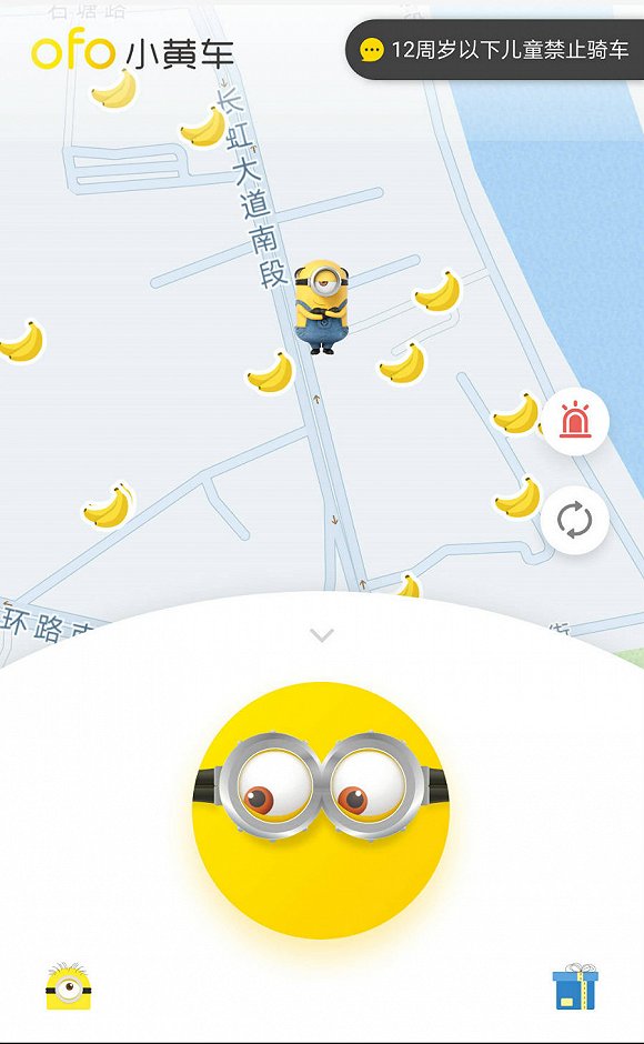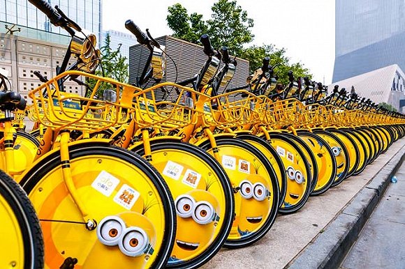 ofo小黄车多了一对眼睛。 周一早晨忙于通勤的人们都注意到了这个变化。仔细一看还会发现,在车轮上还多了“小黄人”的形象挡板。 这群像土豆一样的黄色不明生物,大概是动画电影中逆袭最成功的配角。在这个“卖萌即正义”的年代,你也许对主角格鲁——也就是那位高鼻子男人——的故事不熟悉,但一定对这群贱萌调皮,听不懂他们在说什么的小黄人印象深刻。 它们诞生于2010年的电影《神偷奶爸》,却在2015年的衍生电影《小黄人大眼萌》中成为了主角。根据彭博社的数据,《小黄人大眼萌》的全球票房在2015年排第4,超过10亿美元。为了把它们推上前台,环球影业花费了将近6亿美元。你会发现自从2015年起,这股小黄人的宣传浪潮突然铺天盖地出现在各个角落,无论是亚马逊的快递盒、麦当劳开心套餐里的玩具,还是社交网络上的标签贴纸。 而这次它“变身”成了在中国市场眼下被讨论得最多的共享单车。