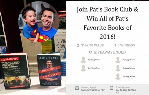 2. 举办竞赛活动 象是Pat这个知名部落客就曾在2016年办了一个活动,总共赠出5本书,有5位参与者有获得奖品的机会,而总价值约莫是150美元。