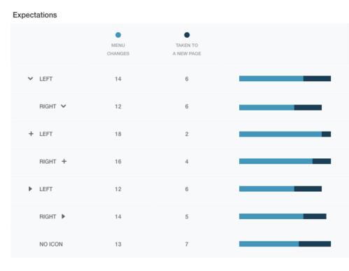 有时点击一个文本标签会导致一个单独的分类页面,点击空白处起不了什么作用。这就是为什么当希望展开时,一些用户会尝试点击图标,而不是分类或空白区域。Research by Viget.com. Large view. 这个位置是否重要?其实根据Viget的“Testing Accordion Menu Designs and Iconography”,一些用户倾向专注于点击明确的图标,而不是整个导航栏。这会发生的一个简单的原因是:以前一些用户可能用“burned”替代实现折叠面板。在一些网站上,分类标题不会触发展开,而是直接进入该分类。在其他实现中,点击导航栏不会触发展开,也不会进入该分类——它不起任何作用。 即使我们将整个区域设计成一个命中目标,但不是每一个导航都有这一行为,一些用户本不知道你的导航是“好的”还是“坏的”,直到他们实际在上面点击(或悬停在它上面)。由于悬停不总是可用的,点击图标似乎是一个更安全的赌注——点击图标将几乎总是触发预期的行为。这是设计折叠面板时需要知道的重要细节。 在各界面实施方面,似乎将图标放置在分类标题的右侧,用户通常选择把更多的图标放在左边(用户点击分类标题或空白栏)。但是,有些用户仍然倾向于选择图标。因此,使图标足够大以适应点击是一个很好的决定,以防万一——尺寸至少为44×44像素。 左对齐,右倾斜还是右对齐?这似乎并不重要。但是,如果你有一组折叠面板(可能会在导航菜单中),分类标题的长度变化很多,需要稍微更多的关注在多个部分间切换折叠面板的状态,而不仅仅是沿着导航栏从上到下移动。只是鼠标指针或手指必须重新定位,才能点击这个花哨的图标!此外,如果图标是右倾斜的,则在狭窄的屏幕上,手指需要穿过导航区域,模糊视图。当图标位于栏的右边缘时,此问题将被解决。 但是,如果图标是对齐右边缘栏,我们仍然需要注意,不要将其放在距离分类名称太远的位置。从视觉上看,展开与这一分类是显而易见的; 所以,在不同的观察框中,图标的位置可能会改变,以保持视觉连接的显着。此外,在更宽的屏幕上的图标可能会变得更大。对于一组折叠面板来说,这个选项似乎更为可取,但对于单个折叠面板来说不会有很大的不同——除非你有其它的数据可以来证明。 设计折叠面板的界面交互Link 尽管这些细节都没有解决,交互还是引起了一些问题。让我们假设分类标题保持左对齐,图标对齐到右边缘栏。跟随上面讨论,当用户点击分类名称或图标或两者之间的空白空间时应该怎么办?它们是否应该触发扩张,还是有不同的目的? 那么,我们可以确定一件事情:当用户点击图标时,他们可能会期待某种展开,所以点击图标就会提示展开。但分类标题可以点击直接跳到该分类,或旨达到展开的目的。 如果分类标题触碰展开,我们绝对需要在子下拉菜单中提供一个分类链接,让用户跳到该部分(例如“所有项目”)。这意味着用户从首页到分类旅程可能会引发混乱,因为他们不希望在点击分类标题时还有额外的点击。但在这种情况下的恢复是显而易见的,并不会强迫用户恢复以前的状态,他们可以继续。 如果折叠面板中的链接显而易见,就不会让人感到混乱,而不是跳到一个分类展开完导航项,然后返回更可能会让人感到混乱。这就是为什么同时使图标和分类标题触发展开更合理。这样就不那么突兀了。这种互动是否会在分类标题和图标之间发生?一些设计师认为,当用户在浏览网站时点击该区域,他们可能不希望展开,而是“锁定”鼠标指针以开始在页面上滚动,因此感觉到破混乱。当然,这是有可能的,但如果用户选择打开导航菜单来浏览导航选项,就不太有可能发生。
