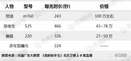 由于广电禁令,传统硬广告频频受限,硬广流失的花费不断流向综艺和影视剧,发力内容合作。在影视剧植入方面,三只松鼠在《欢乐颂》中的成功植入更是带动了品牌方的积极性。对于影视剧中植入品牌数量激增的现象,观众也表现出了一定的抵制情绪,那么品牌植入真的是影视剧品质下降的罪魁祸首吗? 由北京卫视、东方卫视双星同播的《我的前半生》,7月4日首播单平台收视率破1%,播放量破亿,豆瓣评分达到8分。作为多品牌植入电视剧,仅前六集曝光品牌多达15个的《我的前半生》是怎么获得好评无数的? 数据来源:击壤广告大数据 《我的前半生》北京卫视1-6集监播 《我的前半生》植入品牌一览 《我的前半生》前两集15个品牌中,宝马曝光时长最高,达到1259秒;怡宝频次高达63次。