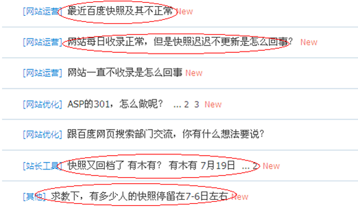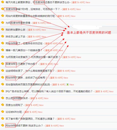 上图是A5论坛一个几分钟之内关于百度快照的帖子,看来百度快照真的是让站长朋友们很忧伤啊。看完了A5再去看看百度站长社区的情况: