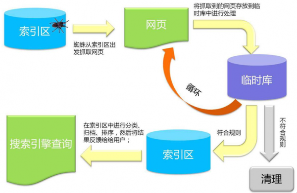 百度排名的规则: 1、链接规则 就是它的站外的链接相互推荐,相当于我们所说的让大家去投票看谁排在第一,投票数多的排在前面。 2、点击规则 高质量的页面的点击率较高,排名就会比较靠前。 3、得分规则 包括停留时间、网站跳出率,用户进去你的网页之后,他会在网页里停留多长时间还是直接关闭了你的网页?他看着你的网页的时间长,自然会把你的网页排在前面,百度认为你的用户体验好。 下面说说百度的索引原理,百度索引的原理于此相似。百度会利用他的抓取工具叫百度蜘蛛到互联网上把大家的页面抓取过来放到它的临时库里,在临时库里把不符合规则的网页清理掉,而符合规则的网页会放到索引区里,这个索引区相当于我们的候选区,然后再经过分类排序的过程,把排名的结果展示给用户。