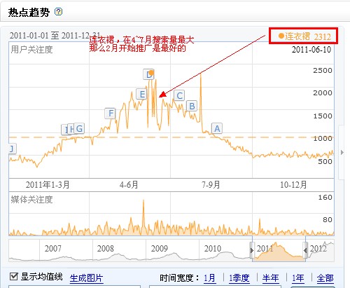 百度指数是以百度网页搜索和百度新闻搜索为基础的免费海量数据分析服务,用以反映不同关键词在过去一段时间里的”用户关注度”和”媒体关注度”。 相信很多站长都用过百度指数,但大多数人仅仅是拿来看一下指数大小而已。其实,他的作用远不止如此,今天,小李博客网简单的跟大家分享一下自己的使用心得: 第一,查看关键词搜索热度;这个大部分人都会用,就是百度指数越大,用户的关注度就越大; 第二,关键词的搜索趋势与搜索规律(四季、工作日/休息日); 如: 点击全部可以看他的整体发展趋势; 点击全年可以查看关键词在不同季节的关注度(如图1);点击月度时,可以分析看用户在工作日和休息日的关注程度不同,等等。