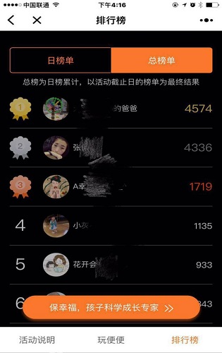 记者随机采访了为人父亲的张爸爸,自儿子出生以来,作为父亲他最关注儿子的素质教育问题。给予足够的爱与支持并不一定能教育出一个有素质的宝宝,他认为孩子的成长分为3个阶段,0-6岁是第一阶段,6-12岁是第二阶段,12-18岁是第三阶段,孩子应该在每一个阶段完成每一个阶段该有的素质教育。希望家长们更为重视孩子的自主能力和自我管理的能力,普遍的父母都希望孩子能够独立思考,独立承担,独立去完成很多事情。0岁-6岁的宝宝面临的很多的第一次,父母该如何正确的参与孩子成长历程中的每一个第一次,是很严肃的问题。 保幸福相关负责人讲到:“保幸福策划本次活动主要是想从两方面引到用户关注,一方面是引到初为人母的用户关注小宝宝0—2岁正确科学把便的问题,一方面是让更多范用户对母爱伟大的情怀和敬仰。我们保幸福平台要做的事情就是让更多专家给予大家解决方案。科学喂养的同时,科学的教育孩子。提高孩子的综合素质是我们的主要目的,保幸福即将开展一系列线上线下基于场景化教学的游戏互动课程体验,让更多家庭参与进来。” 本次“今天你玩屎了吗”活动截止今日,已有超过1亿2000万次的网络曝光,仅微博话题“今天你玩屎了吗”就有超过875万次的阅读量,登上话题榜总榜第二位,可见火爆程度。保守估计到活动结束当日,微信曝光量超过1亿次,微信阅读量突破400万次,参与上传照片的ID数量高达20万人次,朋友圈转发10万+,群转发40万+,总计小程序累计流量50万+,可谓是史上最火的晒屎活动。当然有些人深深记忆可能不是活动背后的品牌商而是本次总榜的大奖奖品,大部分用户应该是被母爱伟大的情怀感动到了,当然也可能是被刺眼的宝宝便便照“晒”到了。 以下图片均为8月2日截稿时的截图,活动还在继续。