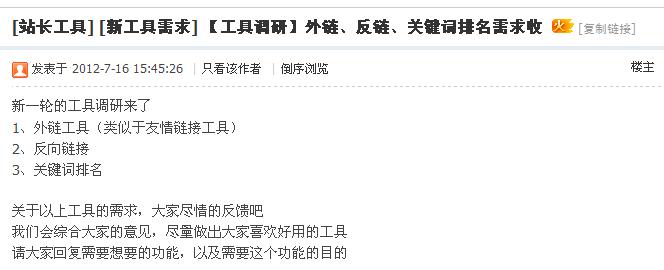这条公告是关于百度新工具的反链、外链、关键词排名等等一个搜集建议贴,之前我们一直身处百度k的风波里面,却忘记了用百度公告来推测百度的“小秘密”,在此之前的关于整顿垃圾内容的公告带来了“6.28和黑色星期五”,难道我们没有理由从这个百度官方的权重、反链、外链工具研发推测下一步百度会根据它的工具大量k我们的网站吗? 记得前段时间看到一篇文章里面提到安装百度统计后对站长是一个定时炸弹,因为百度会通过统计了解到你网站的数据,比如pv、跳出率等等!这些是什么?这些就是你的网站用户体验的数据!恐怖! 如果百度真的会根据外链大量k站我们要怎么做呢? 先来说说现在建设外链的几种常用方式: 第一、软文投稿形成转载外链 第二、友情链接 第三、论坛发帖回帖(包括帖子内的链接和论坛签名) 第四、养博客(第三方博客平台) 第五、分类信息平台 第六、B2B平台产品信息外链 第七、买链接 第八、问答平台外链 第九、百科类外链 第十、百度文库 第十一、视频外链 第十二、网盘外链 通过“越难得到的链接越是好外链”这句话我们知道这些方法里面有一些是高质量的外链,有一些确实“垃圾外链”。 我们看看百度官方的声明: