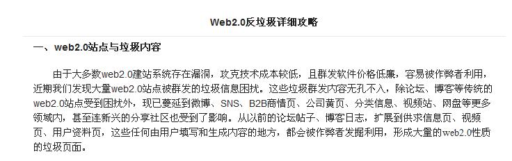 根据百度官方web2.0反垃圾详细攻略文档里面我们可以清楚的看到:博客、论坛、微博、sns、B2B、分类信息、视频站、网盘等都在“反垃圾”计划之中,这也就是从另一个反面告诉我们:博客反链、论坛签名、B2B外链、分类信息外链、视频外链、网盘外链等都属于“垃圾外链”,为什么我加上了双引号,因为垃圾外链还是高质量外链,百度也有声明:一定要相关! 应对百度下次大规模k站外链建设政策: 第一、如果是新站已经收录,最好在做好网站内容原创之后通过软文投稿、百科类网站、问答平台、友情链接四个方面慢慢有度的增加自己的反链; 第二、如果是新站还没有被收录,最好把主要精力放在内容的原创和内链的建设上面,分析网站日志,如果已经有百度蜘蛛来爬行,这就足够了,不要大量去增加自己网站的外链,容易让百度认为你优化过度。(ps:闲云一个月前上了两个小站,上站之前准备了大量原创投稿文章,发布后形成了大量转载外链,可以说质量是不错的,但是却造成了网站一个多月到现在也没有收录,尽管百度蜘蛛一天爬行七八十次,停留时间总共可达到四个多小时,后悔呀!) 第三、如果是有一定权重的小网站,前期一定在百度认为是“垃圾外链产生地”有了大量外链,我们要做的就是大量投稿、增加问答类高权重平台外链来稀释以前的“垃圾外链”。 到底百度下周或者更长一点时间会不会k站,会不会因为外链来k站都是一个秘,我们无处得知,但是古人就告诉我们:有备无患!本文站长支持供稿,原创转载请注明保留来源!为了自己辛辛苦苦养起来的小站能屹立风中不倒下,我们确实要小心为妙!