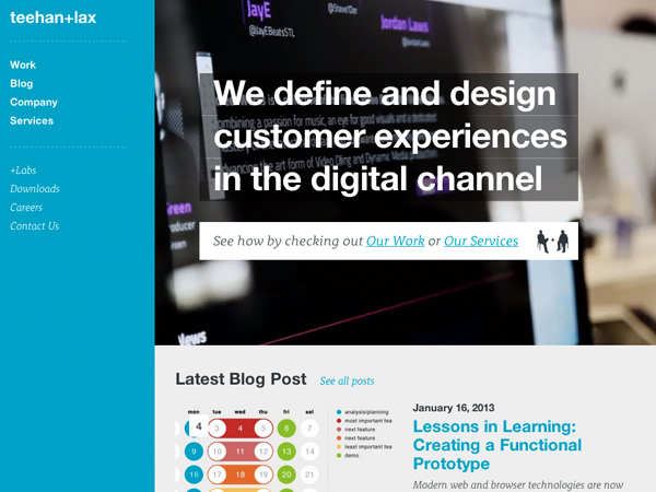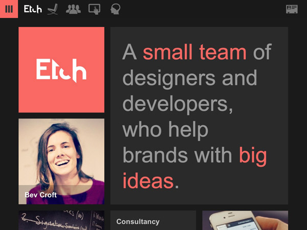 ryanmichaelkelly 如今,我们不仅仅设计传统的电脑显示屏,也设计平板电脑和手机。网站即使在巴掌大小的空间也要清晰可见。很多设计师在进行web设计时都采用增大字号和图片的方式,但是这些方式还不够新颖、大胆。 现在,是时候做更大胆的设计了!我们一直都在进行常规的设计,但是现在的分辨率越来越高,支持的像素也越来越高。事实上,很多印刷媒体中的经验已经被应用到显示设计中。是时候将二者结合、回归web设计了。 超大设计能够吸引人们的注意力,这和简洁设计有异曲同工之妙。如果有什么大块儿头的东西,吸引我的注意力,我一定会先看它!这也许是让我们摆脱平日里各种信息干扰的另外一种途径。 建议:我们已经尝试过大尺寸的图片,现在试试大小在64px到72px之间的文字吧!建议使用FitText这样的工具,这样文字就能自适应不同尺寸的屏幕。 动态图片