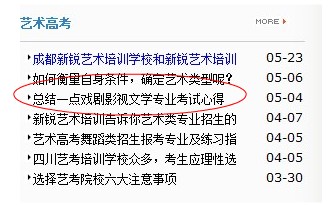 网站内容题材均以时事热点为诉述基点 再好的文章,再有意义的文章,如果不能有效的引起读者的注意力,那么就是一篇失败的文章,就像咱们写文章投稿到A5一样,如果想要让文章通过,第一要点就是引起编辑朋友的注意。话说回来,对于网站内容的创作我们立足时下热点新闻,利用一些比较火的流行用语,穿插于内容的编写,就像现在伦敦奥运会,我们可以在自己的文章内容的编辑中巧妙地穿插相关的内容,就像我的网站是做培训的,那么在供给内容的时候,我会选择伦敦主办方的支持人表现作为案例,从而说明播音学生在学习时应达到的实际演练水平。 注意文章标题的书写方式 说到标题,很多站长朋友立即就会想到标题党,希望用一个“惊世骇俗”的文章标题唬住读者,让读者怀着极其强烈好奇心点开我们的文章,可是这样做的站长朋友想过没有我们呈现文章的目的是什么?难道仅仅是为了一个点击,我们需要的是用内容传递自身的价值观,所以标题党可以有,但是一定要有节制,不能让读者产生一个阅读落差,否则文章的跳出率就会直线上升。另外,对于网站内容的书写方式,我们一般控制在13个字以内,采用“关键词+主体内容”的形式尽量让读者心里对文章有一个大体的了解。 网站内容之间要具有较强的相关性以及拓展性 对于相关性大家较容易理解,就是让网站内容和主营业务有一个较强的相关性,比如你是做艺考培训的,那么网站内容就是就应该围绕培训来展开,说一些培训过程中需要注意的环节,以及学员在学习过程中应该做好哪些准备,这样一来可以让用户对我们网站与一个详细的了解,增加网站的可信度以及专业度,间接提高交易的成交率,另一方面也能让潜在客户提高自身的学习效率,对品牌的提升都有很好的用处。另外,在追求相关性的同时,我们还要注意内容拓展性的建设,就像我自己的网站一样,我会在相关内容旁加上从专业到职业的拓展内容,让艺考学生在选择专业有一个更明确的向导。