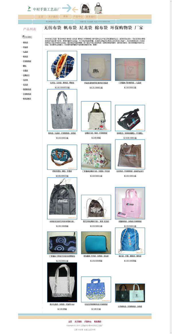 大家可以看到从百度搜索seo在第二页第四位出现的一个搜索结果,竟然是一家购物袋厂家,我勒个去,这货不是百度,这货不是百度,我揉了揉眼睛,没看错把!还真没看错!好吧!既然如此,我们就进入此网站膜拜下此seo大神,虽然不是首页,但也让我们这些seo小兵足以去膜拜的了。怀着好奇的心点击进入此网站,看究竟哪个厂家竟然做seo这个关键词啊!点开之后,引入眼帘的竟然是这等网站,话不多说上截图: