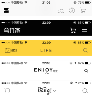△ 贝贝和聚美优品首页 垂直电商里还有一些垂直细分类。例如各种鞋子和袜子、奢侈品类、食品类、箱包、水果类、钻戒和珠宝类、酒、养生保健品类、礼品玩具类、鲜花商城、居家类、汽车用品、药店等。 这些细分类随着时间有的逐渐消逝,如卖鞋子的乐淘。而留下来各种时尚潮品的综合推荐类、家居类居多。这些垂直细分的商品品类不是很多,所以页面设计大多采用大的留白简约型设计。本节文章重点去分析推荐一些垂直细分类的电商。 垂直电商App的首页结构 垂直电商的用户,可能购物的目的性不是很明确,一般都会以逛为主,通过逛发现自己喜欢的一些商品完成购买行为。所以首页会放置各种形式的商品推荐。推荐形式一般有 品类或者品牌中热门单品的推荐。 以专题形式的某一类商品的集中推荐,以商品推荐为主。 如果有达人推荐的子频道,会在首页有露出,通过一些意见领袖的推荐, 知识库,我的理解还是一种专题的合集,比如什么场合适合穿什么衣服,什么季节适合吃什么,如何选择合适的锅。当然这些知识里面少不了各种商品的推荐。 其他一些各种小频道栏目的露出。 因为综合类电商平台模块多,每个模块都可能从属某个部门,需要平衡各种部门事业部的利益。设计师设计的页面体现的是各种协调的意志。而垂直类电商的模块相比就少的多,设计师有更多自由去考虑各种模块的设计问题。知道了垂直类电商的首页的内容组成,我们开始看垂直类电商的具体模块组成。 模块1:标题栏 每个应用都有一个标题栏,这成了App的标准设计了。标题栏上一般会有三个重要的元素组成:logo图形或者文字、搜索页的入口、购物车的图标。 视觉设计1:品牌logo 标题栏放置的Logo文字会进行字体设计,垂直类电商一般会非常重视品牌的露出,所以这里不会使用系统默认的字体,而是贴图使用设计好的Logo文字或者Logo图形。