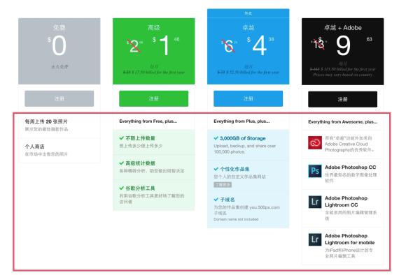 还有一种处理方式,类似于印象笔记,但是由于它们功能维度的不同,没法横向对比,但是纵向来看所属等级的权限还是比较直观的。比如:500px,worktile(但相比印象笔记,还是差点意思)
