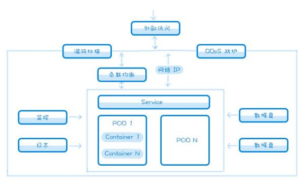 5. 语言方面 开发语言的话,至少仔细学习一门开发语言,如 C 语言,Java 都可以,了解基本的数据类型有哪些以及检查方式,了解基本语句写法,了解基本算法的意义和概念,了解基本的数据结构相关的内容,如栈、队列、表、图等,以及轮询、遍历、二叉树等研发人员觉得很常识的概念,比较推荐看数据结构和算法原理相关的书。 6. 数据库和存储 了解不同类型的数据库类型的概念,了解存储的基本原理等,这块就根据自己的需要适当了解即可。 7. 研发项目管理 了解基本的代码管理平台使用,清楚代码分支、版本等概念,并能够简单的使用命令行工具、Eclipse、Sublime 等开发经常使用的工具,了解前端调试的基本的方法。 8. 云计算业务 熟练掌握计算、存储、数据库、网络、消息、网络安全、私有网络等云计算业务基本概念、逻辑、架构以及业务间依赖关系,如下图是基于容器的计算服务相关业务的简单示意图,清楚 IaaS、PaaS、SaaS、CaaS、微服务等基本概念和基本结构,清楚云计算的权属分类,熟悉云计算的应用场景,如教育、游戏等等。