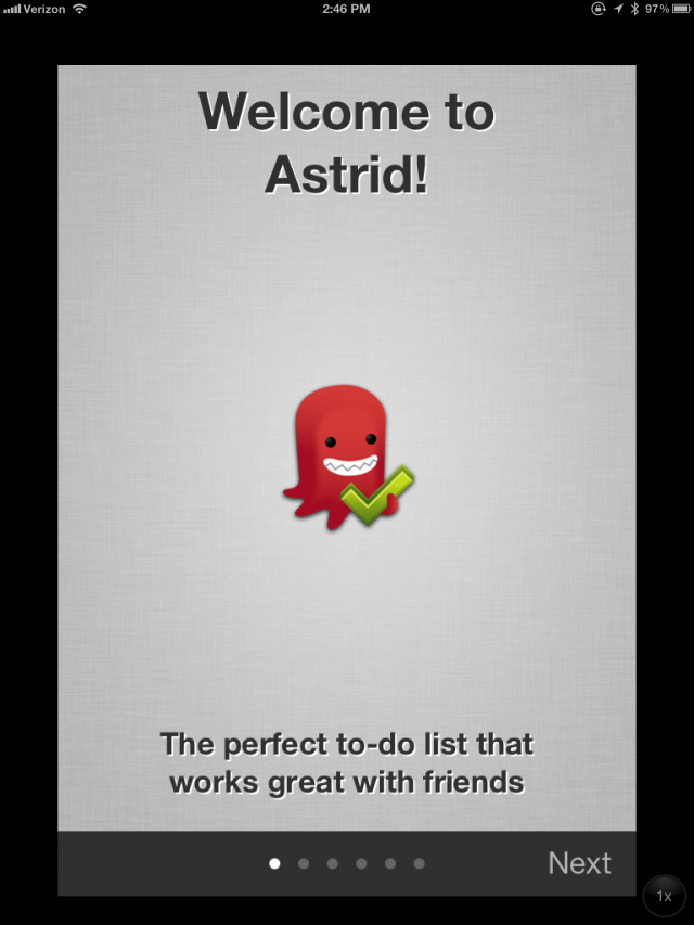 为未来投资 很多公司都害怕要求用户做点事。他们遵循的口头禅是:好的设计应该摆脱用户惯常的、不想用的方式,能节省用户的点击就尽量节省。但他们经常因此忘记,要求用户为他们做点什么也可以是件好事。事实上,尽一份力会让人们对结果的评价更高。哈佛的一项研究中曾提出“宜家效应”这一概念,指的是“回家拼装家具的劳动足以让顾客对做出来的家具有更多的喜爱。” 这一原则适用于装家具也适用于使用app。公司因为从不在适当的时间叫用户做一点事,失去了用户对产品的承诺的机会。 让我们来看一下两个效率型app,Astrid和Any.do。他们都是为帮助用户完成事情设计的。Astrid通过几个子弹型导航屏幕指导用户如何使用。这是经常被用到的设计样式,通过漂亮的界面,将一个多步骤的任务简化成几块单步骤的小动作,让用户更容易消化这些操作。用户只需轻滑屏幕。 但或许这个过程太容易了些。而且又有多少用户在可以快速扫过每个步骤看接下来发生什么的时候,真正地停下来看这些指导呢?用户只会跳过那些想让他们理解怎么使用app的每一个小文本。尽管Astrid实际上很好用,但他们实在应该要求用户在注册流程中做点事。跟着做,并通过这些小小的动作赚取用户会对产品投资的承诺。