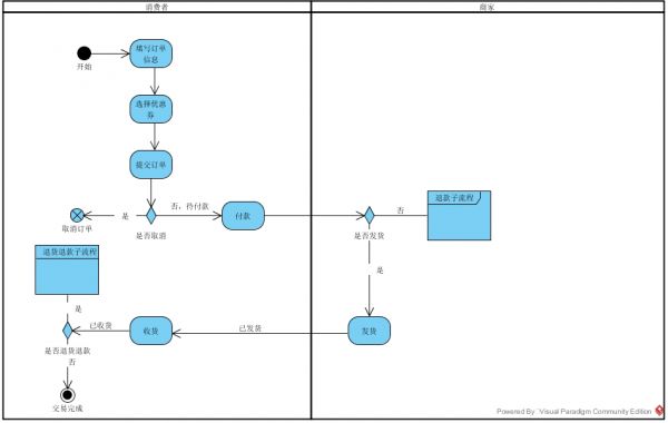 工欲善其事必先其器,先给大家介绍几个我比较熟悉数据结构设计的工具: (1)Axure RP7.0 可以用来做用例及页面原型设计。 页面原型可以直接预览查看。 (2)Visual Paradigm 13.0 可以用来做UML设计,我个人比较喜欢用它来画业务流程图。 也可以用来做类图,用例图。不过导出数据字典的话就麻烦了。 (3)表结构设计器EZDML 使用很方便,方便进行表结构设计,重要的是可以直接导出数据字典。建表的时候中英文直接对照在一起。个人推荐表结构设计用这个工具,后面例子的截图都是使用这个工具做的。 其次,数据结构必须有比较确定的业务实施范围(业务用例)及用户行为(业务活动流程图)。 有了以上结合页面原型设计,我们可以开始数据结构设计了。 如何进行数据结构设计 那数据结构设计要怎么做呢?结合电商购物商城帮助大家进行理解。 拿大家在网上买过东西,形成订单管理流程为例,进行一下简单说明: