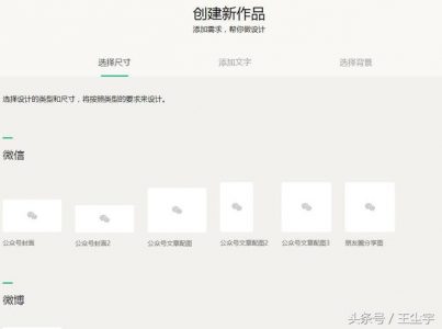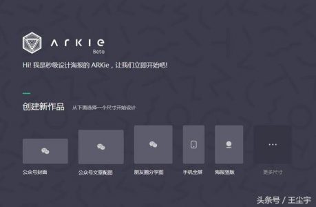 对比其他设计工具,arkie最大的特点就使用简单、快捷,其号称 10 秒可以作出海报。arkie是一款几乎零要求、多尺寸输出、拥有免费图片库、秒级自动生成图文作品的智能设计助手。 在操作上也极为简单,三个步骤完成。 首先是,选择尺寸,比如有公众号封面配图、朋友圈分享图、淘宝店铺的banner、微博焦点图。
