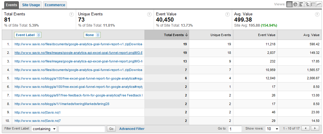 这篇文章有详细介绍:。 上面两件事情做好了之后,自己做热图就很容易了。基本的报告是用Content –> Site Content –> All Pages –> Navigation Summary。这个报告我总觉得有一点遗憾,就是似乎不是特别准确,似乎利用了采样数据。如果你选择了上面2中的第二个方法,你还需要参考Events报告。如果你用Omniture的Next Page报告,那么自己做热图就更准确了。 (责任编辑:admin) |