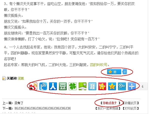 我画框的都是分享按钮,这里放这么多主要是就为了引导用户去帮你分享你的网站,这是一个笑话网站(其他文章类也可以这样操作)那么当我的笑话呈现给用户,用户看完之后,如果他觉得这个很好笑,必然会想“赞一下”来表示这篇笑话真的很好笑,而下面的图标式的分享按钮则给了用户更多的选择,可以帮你分享。那么最后一个文字,看起来比较未知,那么有的用户就喜欢点击一下来看看到底是什么,这样他就会跳到分享页面。 相信大家肯定会有更多的办法来让用户帮你分享的吧。只要我们动脑筋,站在用户的基础上仔细想一下,怎么才能让用户为你带来更多的流量。现在社会酒香也怕巷子深吶!所以我们应该要鼓励用户、引导用户去分享你的网站,而不是一味的加个分享按钮就不管了。 3、合理的外链也是必不可少的,但是我们应该怎么去发布外链呢?有的人崇尚走到哪都带上一个链接,这里我是不赞同的我们应该合理的发,有针对性的发,你发好一个外链,让用户真正去点击你的网站,岂不是更好。所以不要在a5、等等这些站长论坛发布无所谓的外链了,a5权重确实高,但是也没必要说每天跑这里发,我们应该要把自己的链接呈现在需要的人的面前。比如说我有个小说站,那么我可以去安卓书屋、木蚂蚁书库等等这些论坛的书区发布,你发布一个主题推荐给用户一本优秀的小说,然后注明书籍来自你的网站,那么用户高兴了,版主也没话说,因为你确实分享了文章。这样喜欢小说的就很有可能会点击这条链接去你网站阅读小说。所以这是一个问题。不要造成网络垃圾了,效果不好的。这样还有一个好处,就是可以不用太依赖搜索引擎了,当你的这种用户有可能会点击的外链越多,那么你网站的流量就会从多方面进来。这也是一个流量多元化的开始。我们不应该太依赖搜索引擎,这样只会让百度为所欲为。 其实说了这么多总結一下就只是几个字而已:重视用户体验,站在用户角度思考问题,当你用户体验高了,你的用户就会一传十十传百的增加,你还愁没流量吗?减少垃圾站,增加原创,减少垃圾链接,增加用户体验!愿我们的发展越来越美好、培养网站的忠实用户,百度再k也不怕了! 本文我要建站网 原创,a5首发。对网站喜欢交流的企鹅:943070894等你一起交流探讨问题 (责任编辑:admin) |