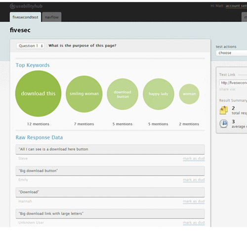 Five Second Test 通过汇集用户在5秒内回答的问题集来改善目标网页以让访客关注关键内容。