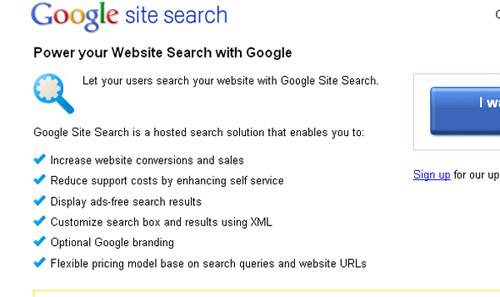 Google Site Search 在Google Site Search中,强化了企业网站的索引范围;一个托管的搜索解决方案,可以呈现无广告的搜索结果,提高网站的转化率和销售额,降低成本。