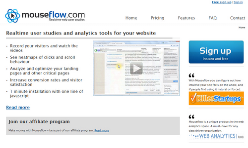 Mouseflow 通过视频记录和分析用户的点击和滚动行为,生成鼠标点击和移动热图,帮助你优化目标页面和提高转化率。