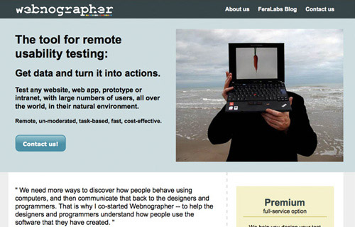 Webnographer 是一个远程的可用性测试工具,测试网站、Web应用程序或者原型在自然环境中可操作行的指标,通过调查问卷捕获用户的思想。