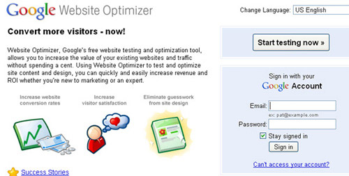 Website Optimiser 网站优化工具是Google免费的网站测试和优化工具。使用该工具,无需投入任何费用就可以提高现有网站的价值和点击量。通过使用网站优化工具对网站内容和设计进行测试和优化,不管您是营销新手还是专家,都可以轻松快捷地增加收入和投资回报率。可以进行A/B实验和多版本实验两种实验。