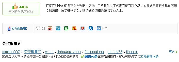 5).内容更新 网络蜘蛛需要新鲜的东西,百科的词条很多内容都是经常更新调整的,可以看出,经常对内容进行调整、更新是有好处的,不但可以让内容越来越全而且有利于引擎蜘蛛爬行和抓取,而百科的标题或者其它重要地方没有改变,这就说明网站标题不能轻意改变,如果有改变,百度就要重新索引数据库,势必导致关键词排名下降。仔细研究百度百科就会发现,百科因为有大量用户的不断修改,是网页内容经常处于变动中,不断更新的网页产生了网站主页的效果,权重的到极大地提高,当然在搜索排名中也得到了良好的体验。 6).互动参与 百度百科每一段都有编辑本段的功能,让用户参与词条的编辑,很好地保持了网页的时效性和新鲜度,一个是实现被动更新,第二增加用户体验度,增加文章的技术含量和权威性。
