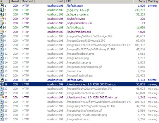 js和css文件都变成1个了。我们把上边的js文件合并成1个js文件。这样我们就减少了httprequest的次数。 2.发送尽可能少的数据 我们回到fiddler。查看第一个网站的jquery文件“jquery-1.6.2.js。