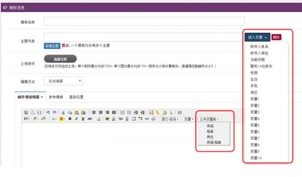 企业围绕着客户为中心,追踪客户活动轨迹,为其构筑一个闭环的服务,比如电商从引导客户访问网站、注册确认、激活链接登录、选购商品、确认支付到后期的物流提醒信息、反馈等,以及设定当客户多久未访问网站、未再继续购买商品、放进购物车却迟迟没成交或举办促销活动、购物车商品价格有变化等诸如此类情形,均可以因应的设置邮件自动触发提醒。 U-Mail邮件群发平台可以与企业其他系统对接,比如说在客户消费金额达到一定数额时,自动触发邮件赠送优惠券或返还金额;再如在客户生日、公司周年等富有纪念性日子之际庆赠予的积分、礼品券等物;大型企业群发工资单…… 当公司有海外市场时,用户可以根据海外各地时差不同,在U-Mail邮件营销平台自动设置发送时间,选择在对方最专注的时间段到达。 二、个性化 新生族群80后、90后都特别重视个性的诉求,无论是产品的设计、功能的开发还是群发邮件的制作都必须为其量体定制个性化的内容,营销人员可以用U-Mail邮件营销平台实现: 1.U-Mail不但拥有公共变量库,而且可提供9个固定变量,15个自定义变量,除了常见的用来区别不同消费者的姓名、年龄、性别等变量外,营销人员完全可以自己需要来斟酌设定变量。如此多的变量大大扩展了邮件的表现力和适用性,使其丰富多样,极大限度避免被列入垃圾邮件,更成功吸引了客户的注意力。