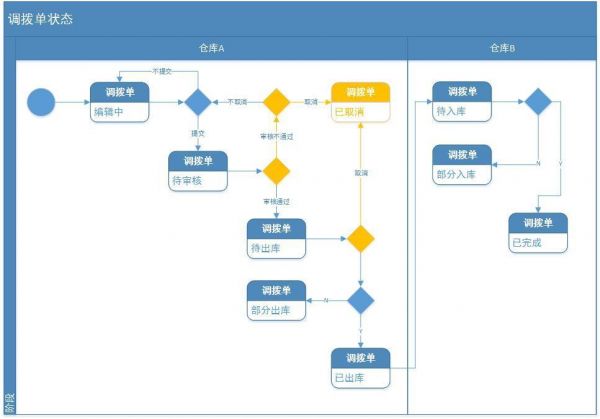 库存组成因素!!! 仓库系统中的库存主要由入库和出库行为组成 入库主要指的是商品数量的增加,包括采购入库,退货入库,调拨入库,盈亏入库。 出库只要指的是商品数量的减少,包括销售出库,采购退货出库,调拨出库,盈亏出库,破损等。 3. 整合规划实施步骤 (1)针对三方平台的商品销售,实施指定库存;针对某一渠道设置商品最大可销售库存;各个渠道商品库存更新时取各自渠道库存,防止超卖现象 可设置固定库存,亦可以按实际平台销售占比更新库存 当然按比例更新库存需要依托大数据,实现难度比较大,故一期运营人员可以根据每个月的实际情况,对特定商品进行固定库存指定;其他的和自用平台共用一套库存 (2)针对自营平台,用户下单时直接减库存,如果一定时间段不付款,则释放库存,取消订单系统中的占用库存概念 4. 为了更好的说明商品出入库,按业务流程逐步说明 (1)采购 A. 业务流程 每个商品采购入库时都会关联到仓库的货位,产生订单配货出库时可以快速确定货位取货出库。 采购入库的商品,如果因为过期等原因,产生退货,则退货出库时亦可以确定货位退货出库 退货入库—售后退货收到后,相关业务人员做退回入库处理。 B. 功能点思考 故在实施过程中,要有货位管理列表,添加,修改,启用,禁用仓库货位 (2)仓间调拨 A. 业务流程 根据商品订单的实际出库情况,可以进行仓间的调拨。将商品A从北京仓调拨到武汉仓;调拨审核后真正实施北京仓减库存,武汉仓加库存操作;今天主要说内部仓间调拨,不牵涉外部调拨的情况。 B. 功能点思考 调拨单的开具需要进行审核,审核通过后,仓库间进行入库,出库操作