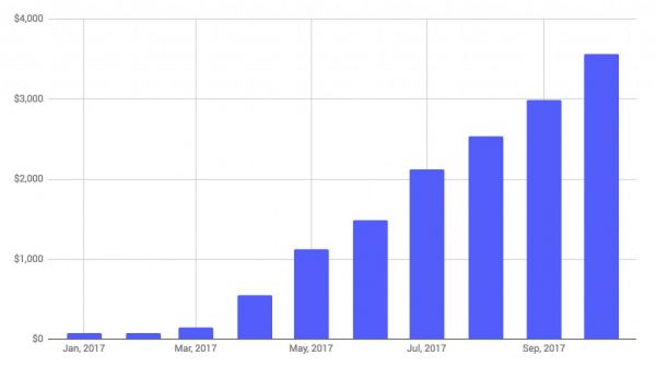每天都有成千上万的人在使用我们的产品,这当中不乏项目经理和创始人,他们面临的问题也是我们所要解决的。然后他们注册了 Canny,想为自己的产品所用。这一渠道是由我们的创始人 Sarah 发起的。我们的几位客户已经从竞争对手那里转而投向我们的怀抱。 因为我们已经有了大量的用户流量,所以我们花了大部分时间来优化漏斗: 1)登录页→定价页:迭代并简化我们的登录页,尝试了不同标题和关键功能。 2)定价页→注册页:更改并简化我们的定价页,添加了一个滑块以消除定价焦虑。 3)注册页→免费试用:简化了注册页。 4)免费试用→试用:创建用户引导功能以鼓励用户的关键操作,使功能更易于集成。 5)试用→付费:在 Intercom 上投放滴流式广告,以鼓励关键操作。添加了记帐提醒。 6)付费→留存:提供及时而友好的客户服务,维护服务质量,确保人们能从中获得价值。及时修复漏洞,同时创建有意义的功能。添加粘性集成,例如 Slack 和 Zapier。 在大多数月份中,我们的用户流失率都是零。通过这种渠道,短短几个月内,我们的月度经常性收入就超过了之前的三倍。 经验教训:少写代码,早点开始营销。由于我们是工程师和设计师,所以常常会退回到“产品思维”中去。功能是非常重要的,但只注重功能通常不是驱动业务的最理想办法。 月度经常性收入:3500 美元 (2017年10月)