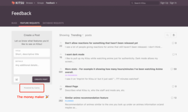 经验教训:如果你希望向科技公司销售产品,Product Hunt 则是一个非常不错的推出平台。这个平台的亮点在于一次性触发而非营销策略。早一点在平台上亮相,你会得到有价值的反馈。如果晚一点,你就会得到付费用户。幸运的是,我们我们是后者。 月度经常性收入:1000 美元 (2017年5月) 生成客户导入式引擎 我们迎来了 100 名付费用户,而我们从来也没有做过任何推荐式营销。我们最强大的渠道通常以“由 Canny 提供技术支持”这样的形式出现。这是构建面向用户的 SaaS 产品的巨大好处之一。面向用户的意思是,我们的产品被用户的用户来使用。