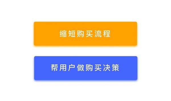 3.购买——流畅度 如果用户已经完成了前两步「触达」,「抉择」,那接下来就是要花钱购买了。 在这个阶段,需要提升购买流程的流畅度,可以分两步:a.缩短购买流程;b.帮用户做购买决策。