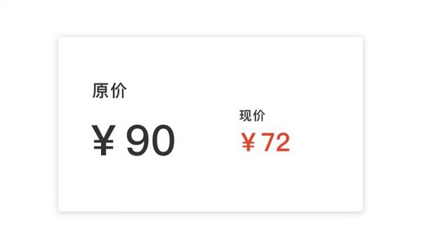 还有一个有效的方法是,当你将原价与现价在视觉上强化区隔,比如:间距、字号、字色、等等……差别更大,感官上会觉得两个价格差别很大,会认为打折后的价格更低,更有吸引度。比如下图,会给人感觉72比90便宜很多。