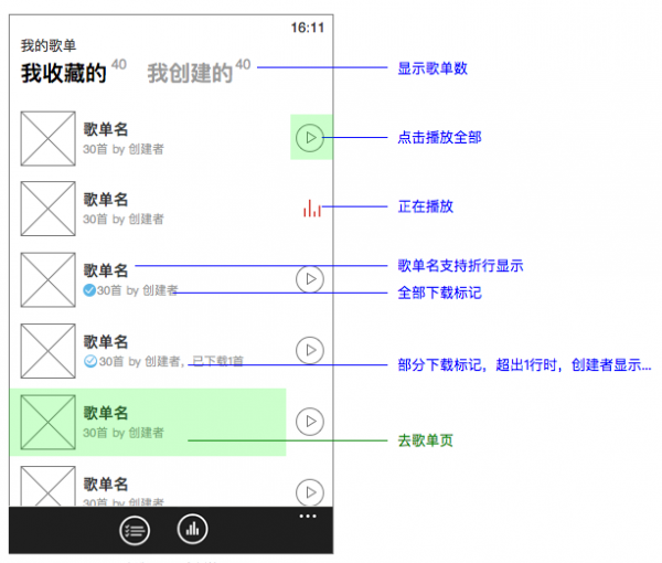 国外有很多交互稿都是这么表现的。优点是看上去非常规范,适合注释密集的界面;缺点是开发的视线需要在界面上游走,找对应关系。 另外一种形式是注释和UI用直接用一条引线相连。