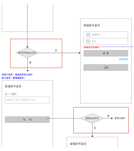流程图 主线和分支的走向要始终保持一致。 如下图中红框框出的,“是”和“否”在两次判断中的走向不一致,对看的人来说就不是很好的体验。