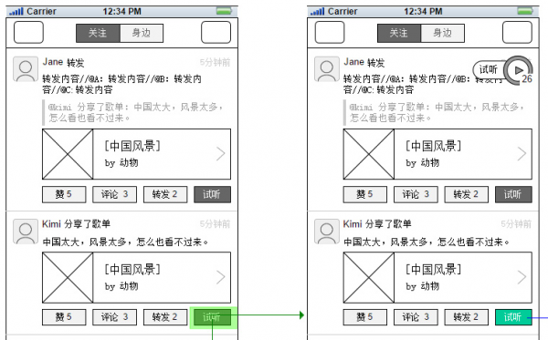 单个界面尺寸不要设太大,建议等比例缩放。否则一屏之内显示不了几个界面,浏览效率太低。 注释 注释要简洁、明确。 从表现形式上分两种。一种是注释和UI离得较远,自成一体,用数字标一一对应。