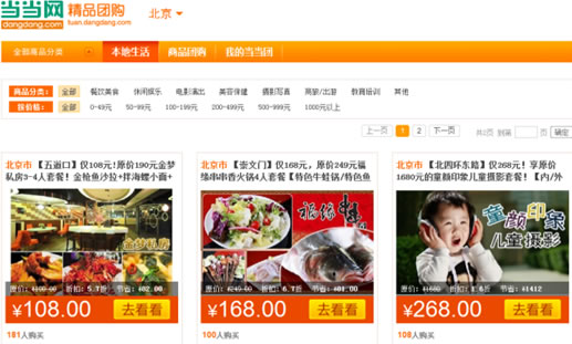 [导读]新版首页上线同时,当当网团购业务及手机充值业务也悄然上线,当当网团购业务以开放平台为主,通过引入主流的团购网站进行,目前包括F团及高朋两家团购业务正式入驻当当。