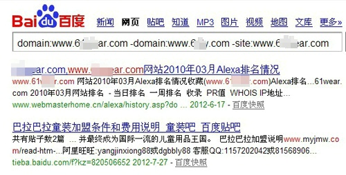 如果你是网站站长,那么一定对网站结构优化,页面优化、URL优化很熟悉,而且有时就需要分析自己的网站或是竞争对手的网站情况,此时我们就会用到SEO的一些常用指令帮助我们更全面的了解网站情况,如使用site命令查询网站大概被搜索引擎收录的情况,利用domain命令在百度中查询网站被搜索引擎收录的外链数量等等。 虽然使用这些高级指令可以帮助我们了解自己网站信息,及大概分析竞争网站的信息,但有的时候,就需要我们使用一些组合的高级指令准确去寻找网站相关资源。下面以某个网站作为示例,与大家分享下一些实用的SEO高级指令的组合用法,希望对站长们有帮助。 一般随着网站建站时间越来越长及在站长们的努力下,网站逐渐有了一定的外部链接和知名度,站点网址也会可能会被其它网站引用,从而为网站积累数量庞大的页面外链数,这个时候,站长如果在搜索结果中分析这些数据就显得特别不容易。 例如站长要在百度中通过domain命令查外链数,还要求做链接的源页面中含有网站一些关键字,并且排除网站内部链接;还有就是站长在查询的外链时,有一部分的页面中既链接我们的网站,也链接了竞争对手的网站,为准确查询,我们就要使用SEO命令排除这些页面,只寻找链接到我们自己网站的页面,此时我们可以使用SEO命令组合方法:“网站关键字domain:网站域名 减号site:网站域名减号domain:竞争对手网站域名”来查询,如下截图。
